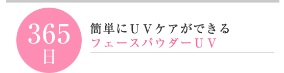 フェースパウダーUVなら、無油分だから肌に優しい使い心地で、手軽にサッと塗り直しができる優れもの。更に持ち運びが便利なコンパクトUV(プレストパウダー)を重ねづけしてWブロックすると、紫外線予防効果もグ~ンと高まります。 |
