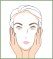 3 Tゾーン・Uゾーン・目元に広げ、手早くメイクや皮脂などの汚れとなじませます。小鼻や唇もお忘れなく。